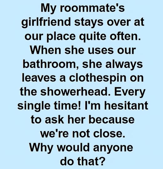 I live with a roommate, and his girlfriend stays over quite often. Every time she uses our bathroom, I notice something odd — she always leaves a clothespin clipped to the showerhead. At first, I brushed it off as just a quirky habit. But as the weeks went by, I couldn’t help but wonder why she did it every single time. It started to feel like a little mystery right in my own home.