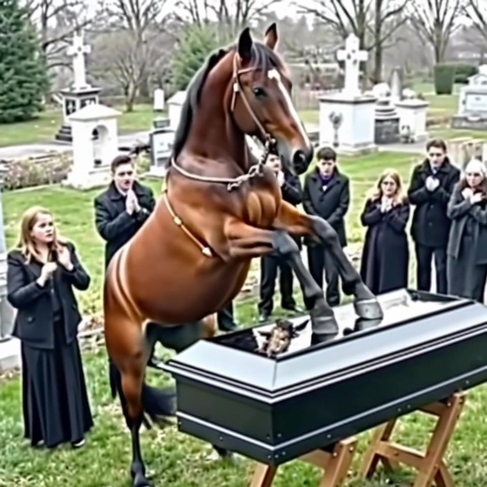 Astoria charged forward with a determination that was both bewildering and captivating. Her hooves pounded the ground with a rhythm that seemed in sync with my own racing heart. As if directed by some unseen force, she dodged mourners and obstacles with grace and precision, her focus solely on the wooden casket that held my husband’s lifeless body.