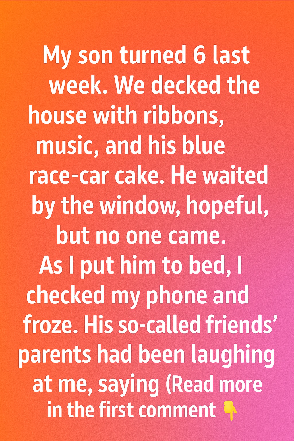 What none of them understood was how much heart my son had poured into choosing every detail—from the ribbon colors to the race-car cake he had imagined for months. I sat at the edge of my bed that night, the glow of my phone blurring as tears filled my eyes, not from embarrassment, but from the ache of knowing my little boy’s disappointment had been caused by adults who should have known better.