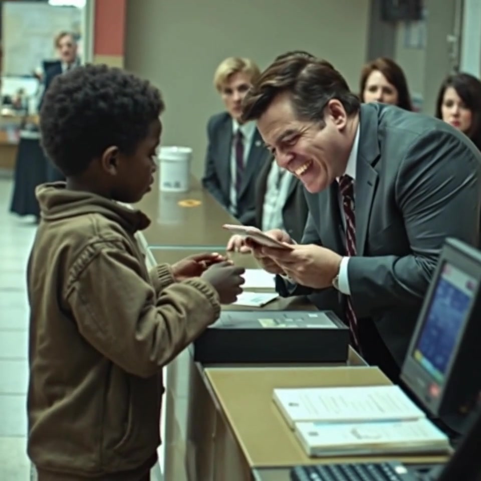 Mr. Holloway, a seasoned banker with a reputation for fairness and integrity, stepped forward, silencing the crowd with a wave of his hand. He approached Wesley with an air of authority and genuine concern. “Young man,” he said kindly, “may I see your documents, please?”
