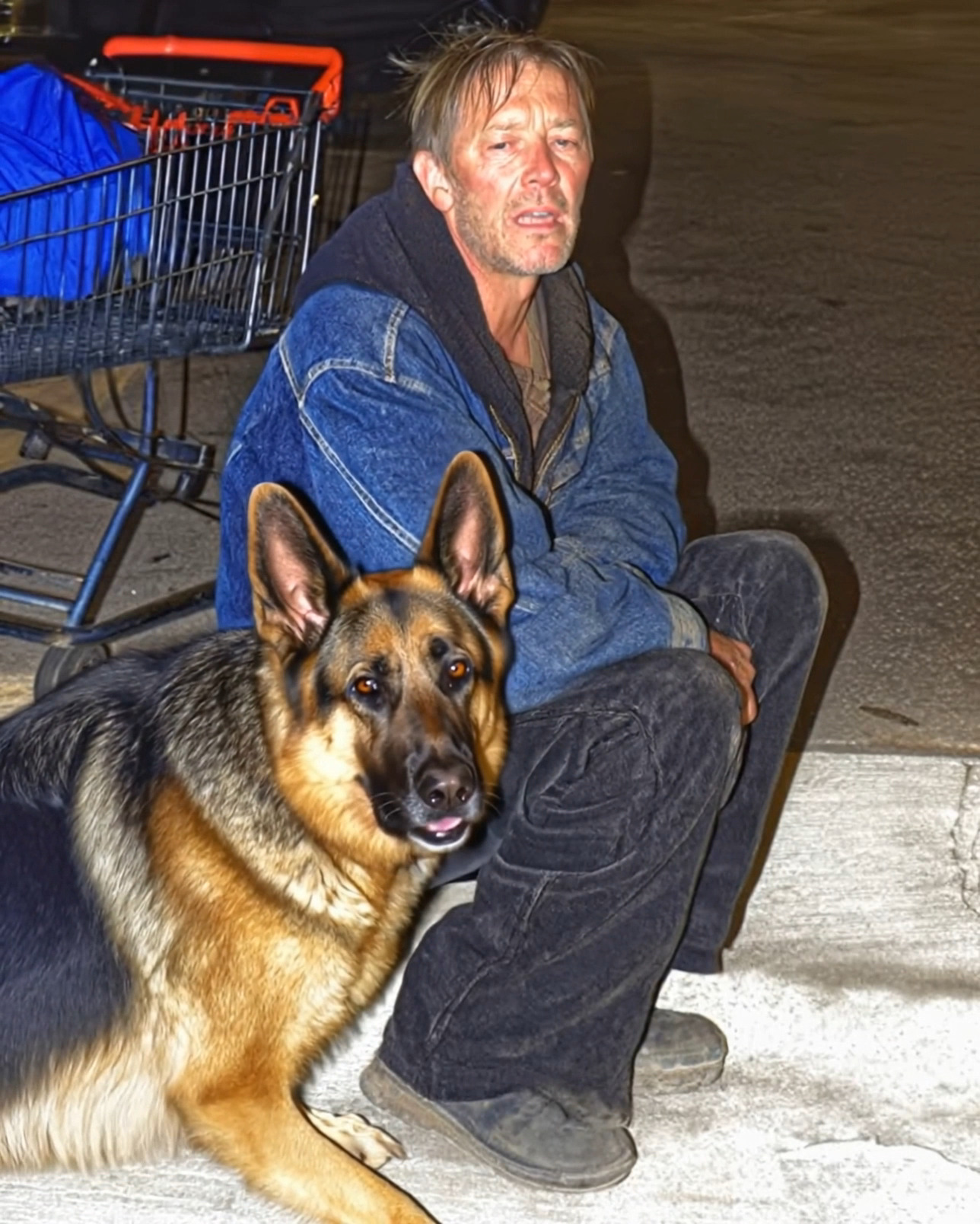 He looked defeated, worn down by life more than by years. The dog actually seemed in better shape than its master.
