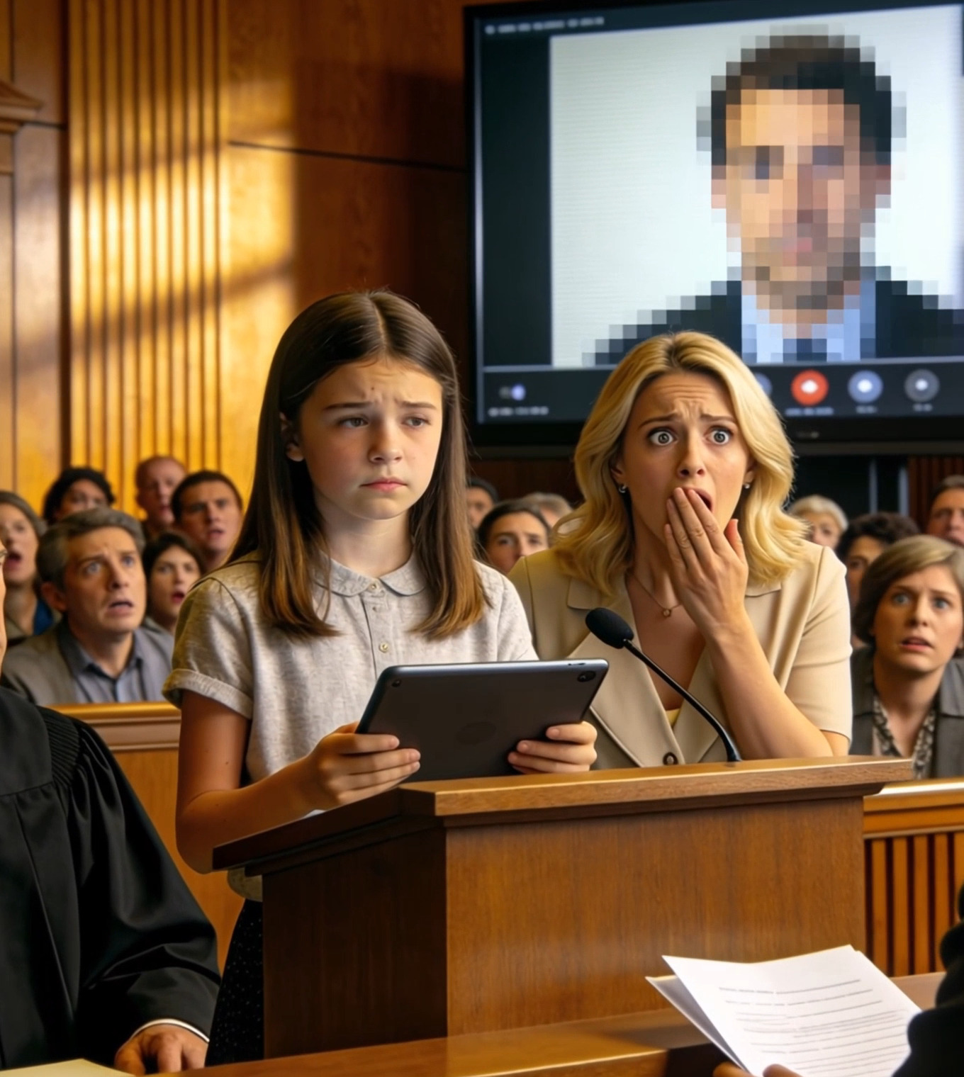Harper was sitting next to me. Her feet didn’t reach the floor. Her fingers were neatly interlaced, far too composed for a child. I hadn’t wanted her to witness this scene. But Caleb insisted. According to him, it would help the judge “understand reality.”