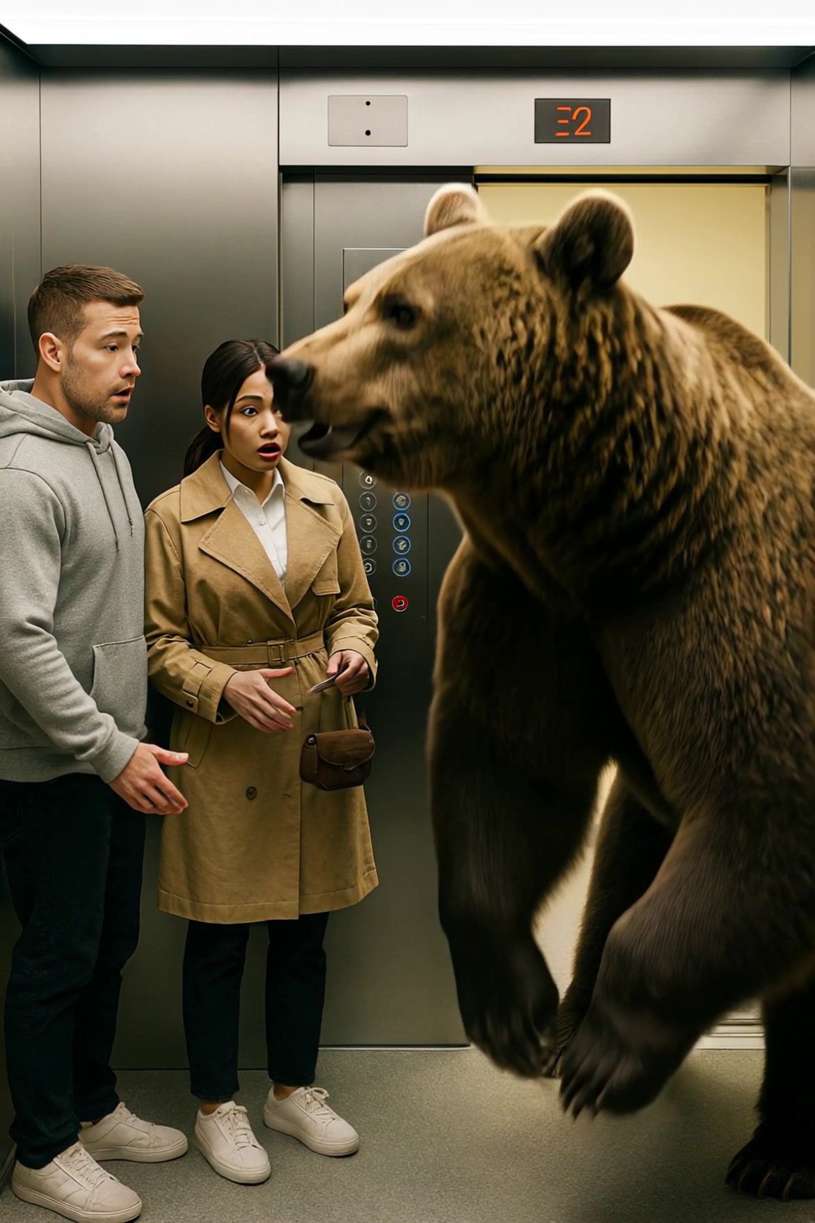 The man hesitated for a moment, then pressed the “close doors” button, but the elevator didn’t respond. The bear, as if sensing their fear, made no sound — it just breathed slowly, deeply, as though begging them not to be afraid.