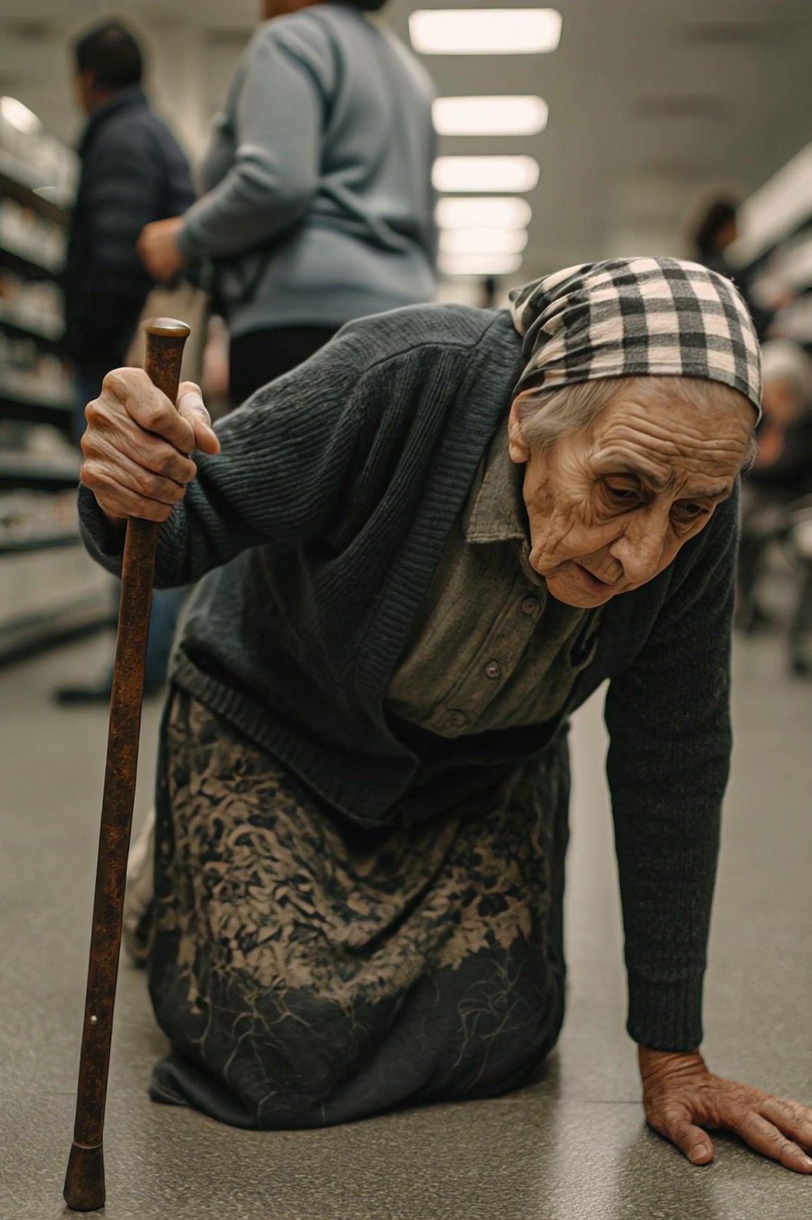 An elderly woman fell in the middle of a supermarket, but no one even tried to help her: the grandmother crawled toward the exit, hoping somehow to make it home — when suddenly something unexpected happened