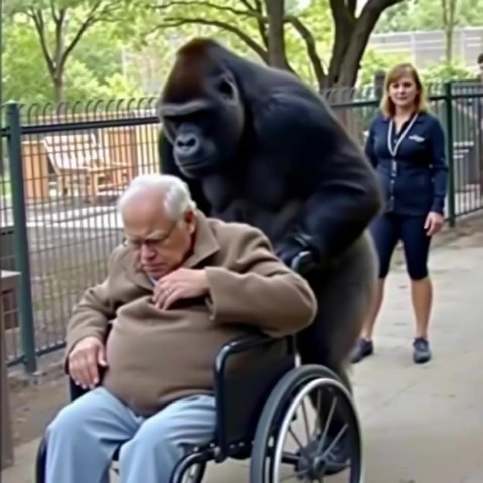 At the zoo, a gorilla suddenly attacked a man in a wheelchair, grabbed the handles