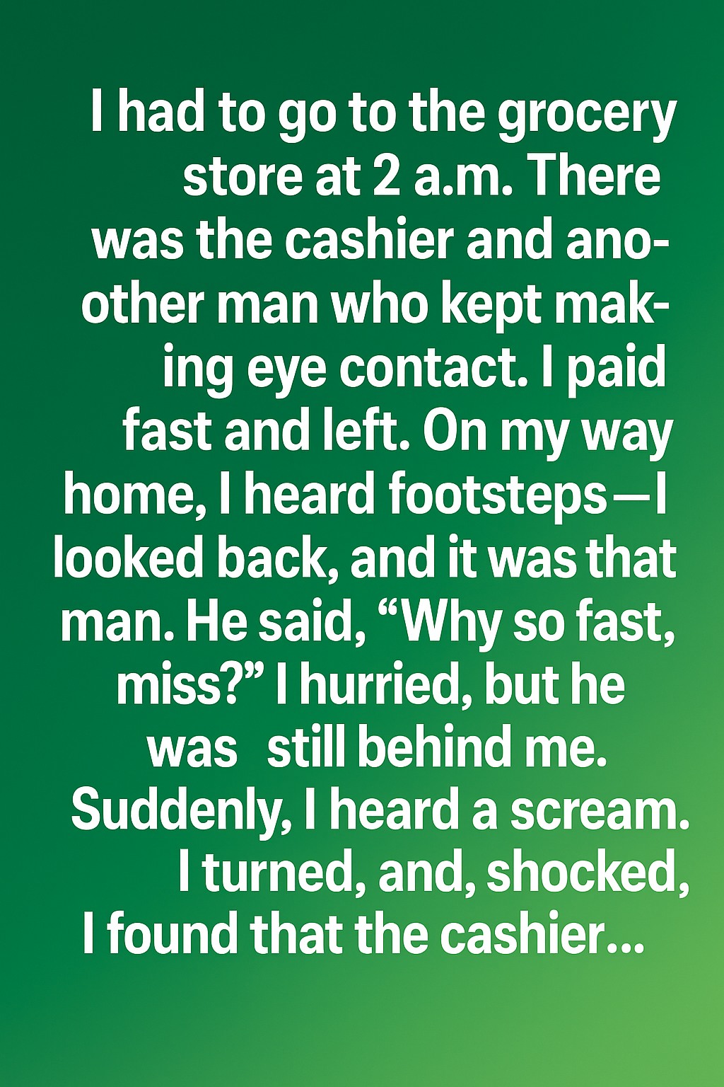 I had to go to the grocery store at 2 a.m. There was the cashier and another man who kept making eye contact. I paid…