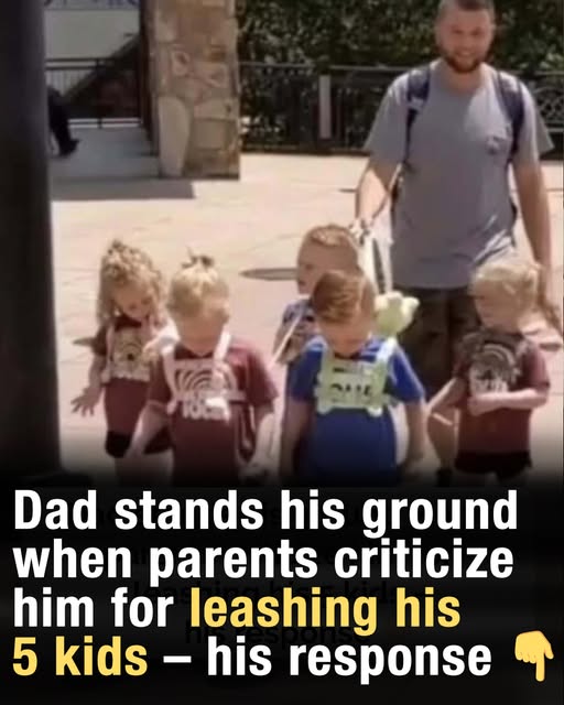 31-year-old dad, Jordan Driskell decided to find a creative solution to his problem. He bought leashes meant for children to control his rambunctuous little kids when they are in public together.