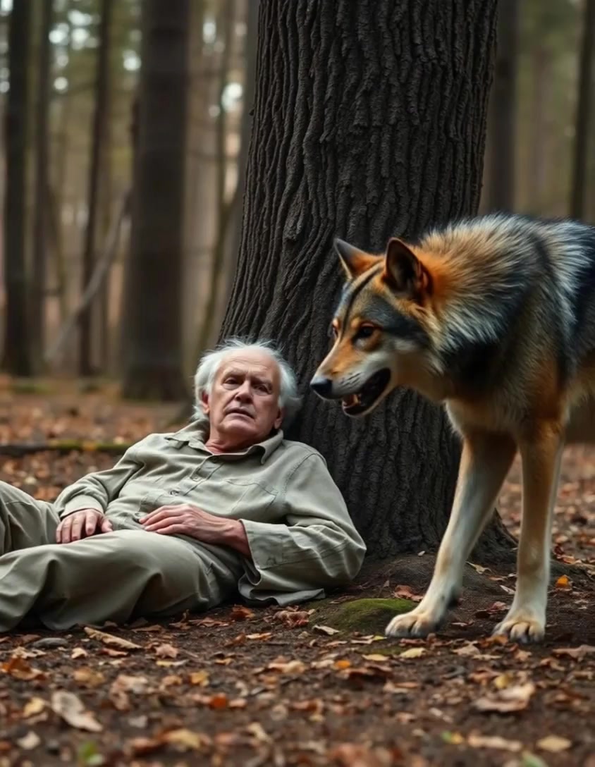 As the old man braced himself for what he believed would be his final moments, he felt a gentle nudge rather than the sharp bite he anticipated. Cautiously opening his eyes, he found the wolf standing just inches from him, its gaze steady and surprisingly gentle. Instead of snarling or lunging, the wolf let out a soft whimper.