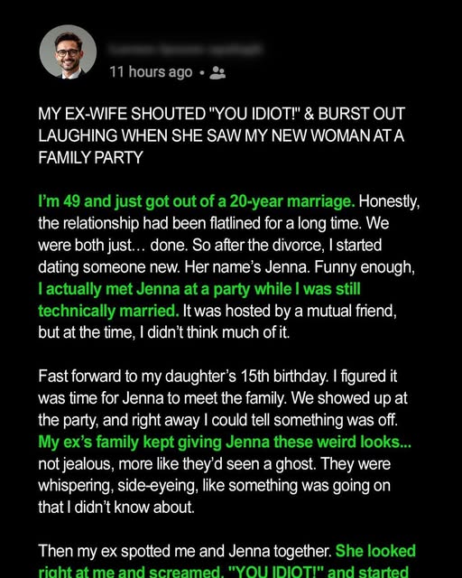 Marcus believed he had found new happiness when he left his wife of twenty years, Izzy, after meeting Jenna—a woman who made him feel renewed and alive. Though the divorce deeply affected his children, Caleb and Maya, Marcus convinced himself that moving on was the right decision. After several months, when his daughter’s 15th birthday came around, he decided it was time to introduce Jenna to his family during a celebration hosted at his former mother-in-law’s home.
