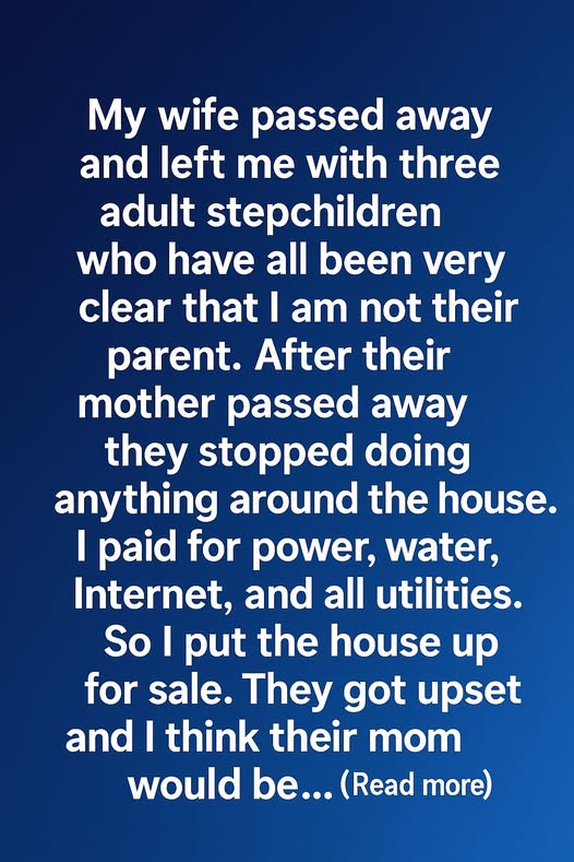 My wife passed away and left me with three adult stepchildren who have all been very clear that I am not their parent. After their…
