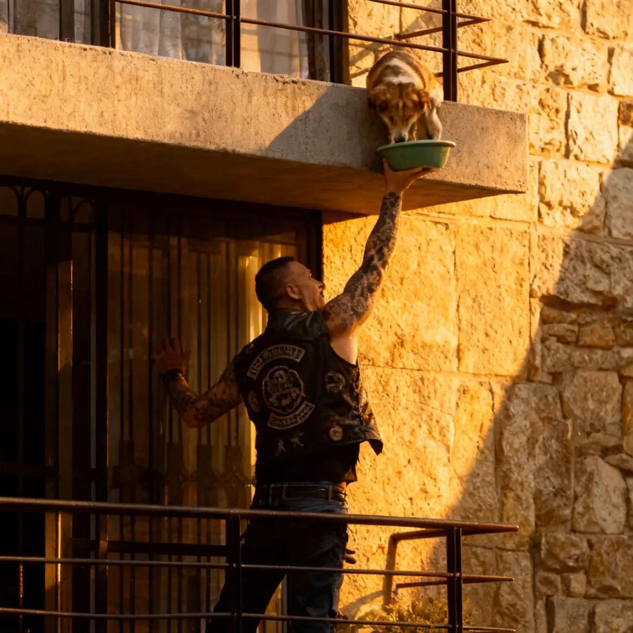 I called the cops on the biker climbing my neighbor’s balcony until I saw what he was feeding. I had been ready to report what I thought was a dangerous break-in, my hand hovering over the call button, heart racing. But when I looked closer through my kitchen window, the scene shifted from suspicious to heartbreaking. The man wasn’t prying open a window — he was carefully balancing with a bowl of food, offering hope to a starving German Shepherd. For six days, I had listened helplessly as that poor dog cried and grew weaker. He wasn’t a criminal; he was the first person brave enough to act with compassion.