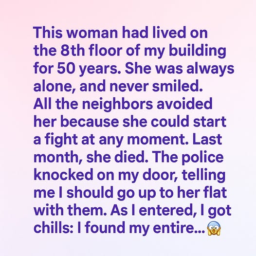 This woman had lived on the 8th floor of my building for 50 years. She was always alone, and never smiled. All the neighbors avoided her because she could start a fight at any moment. Last month, she died. The police knocked on my door, telling me I should go up to her flat with them. As I entered, I got chills: I found my entire…childhood mapped out on her walls.